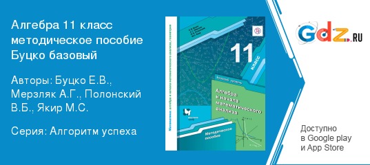 ГДЗ к методическому пособию по алгебре 11 класс Буцко Е.В. (базовый уровень) служит для помощи ученикам в усвоении материала и проверки своих знаний. Пособие полностью соответствует всем требованиям федерального государственного образовательного стандарта полного среднего образования.