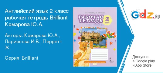 ГДЗ по английскому языку рабочая тетрадь Brilliant за 2 класс Комарова – верный помощник в учебе для школьника. А сам английский язык – один из самых важных предметов, которые имеют влияние на будущее. Он открывает перед учениками новые горизонты: возможность найти друзей по всему миру, престижная должность в успешной компании, путешествия. Все эти пункты являются привлекательными и необходимыми для качественной жизни, именно поэтому необходимо начинать изучения данного языка с раннего возраста. В современном мире многие дошкольные учреждения включают в свою программу изучение иностранного предмета, что позволяет детям в столь раннем возрасте познать азы и прийти в школу уже подготовленным и заинтересованным. Во втором классе учащийся впервые знакомится со школьным курсом иностранного благодаря грамотному учебнику и дополнительным пособиям. Они позволяет не заскучать во время обучения, и познать необходимую базу используя интересные и увлекательные задания.