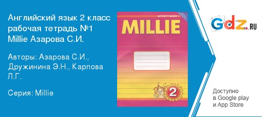 «ГДЗ рабочая тетрадь №1 Millie по английскому языку за 2 класс Азарова С. И., Дружинина Э. Н., Карпова Л. Г. ФГОС (Титул)» - лучшая книга для изучения устойчивых выражений и верного написания слов