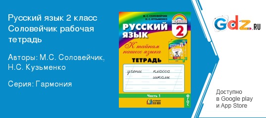 На протяжении всех школьных лет ребята трижды сдают экзамены различного уровня сложности. И каждый раз в центре проверки знаний находится русский язык. Ко второму классу ученики уже прекрасно понимают, что от степени освоения грамматики родной речи зависит не только успеваемость по одному предмету, но и отметки практически по всем дисциплинам – ведь абсолютно правильный ответ по истории или информатике вряд ли учитель признает отличным, если правописание и пунктуация «хромают». ГДЗ по русскому языку 2 класс рабочая тетрадь авторов Соловейчик и Кузьменко разработаны именно для того, чтобы помочь ученику с минимальным расходом времени получить твёрдые знания предмета. Во втором классе уже нет того учебного напряжения, которое становилось серьёзной проблемой в прошлом учебном году, когда началось знакомство сразу с несколькими новыми сложными предметами. Поэтому именно сейчас наступает идеальная пора для того, чтобы в спокойной обстановке, не торопясь, проанализировать и подтянуть все свои знания. Именно на выполнение этой важной задачи и ориентирован отличный виртуальный репетитор.