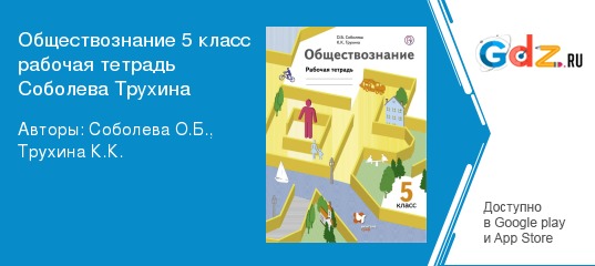 Что входит в решебник рабочей тетради по обществознанию для 5 класс Соболева, Трухина