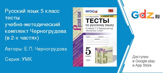 Ни один источник дополнительной информации еще не сумел заслужить такой популярности среди современных школьников, как «ГДЗ по Русскому языку 5 класс тесты Черногрудова (Экзамен)» . В чем секрет? Конечно же для всех ребят очевидны такие преимущества, как: