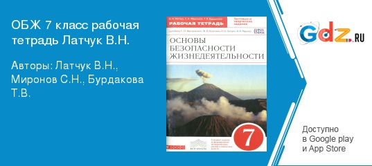 Предлагаем вашему вниманию наш уникальный сайт, на котором находятся гдз по ОБЖ 7 класс рабочая тетрадь Латчук В.Н. Они выступят в роли замечательного и надёжного подспорья для учащегося с любым уровнем знаний. Даже если он последнее время на уроках никого не слушал, а просто разговаривал с одноклассниками или отвлекался на смартфон, он все равно получит положительный результат, позанимавшись с ресурсом. Поэтому и в его тетрадках и дневнике будут появляться пятёрки и четвёрки, что заметно улучшит и повысит успеваемость!