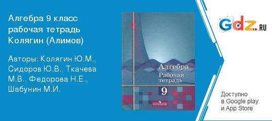 «ГДЗ рабочая тетрадь по алгебре за 9 класс Ю. М. Колягин, Ю. В. Сидоров, М. В. Ткачева, Н. Е. Фёдорова, М. И Шабунин» полностью соответствует всем строгим требованиям ФГОС и прилагающемуся к нему учебнику