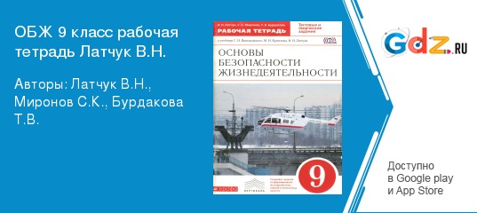Любой учебный предмет заставляет ребенка прикладывать максимум усилий, даже такой, казалось бы, на первый взгляд, легкий предмет, как ОБЖ. Но это не совсем так, этот предмет требует особого внимания, для того чтобы научиться избегать по возможности неприятных ситуаций, а если это случается, то, как себя вести при возникших обстоятельствах. Подтверждение знаний теоретического материала сопровождается выполнением различных заданий, с помощью которых выясняются слабые места в изучении той или иной темы. Поможет ученику приобрести надлежащие знания основ безопасности жизнедеятельности использование в учебном процессе ГДЗ по ОБЖ 9 класс рабочая тетрадь автор: Латчук (Вангородский ). Пособие полностью соответствует всем требованиям ФГОС и рабочей программы основного общего образования.